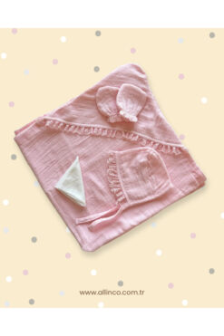 Cassiope Allin’co -Cassiope %100 organik pamuklu Müslin Yenidoğan Kız Bebek Hastane Çıkış Seti Pembe