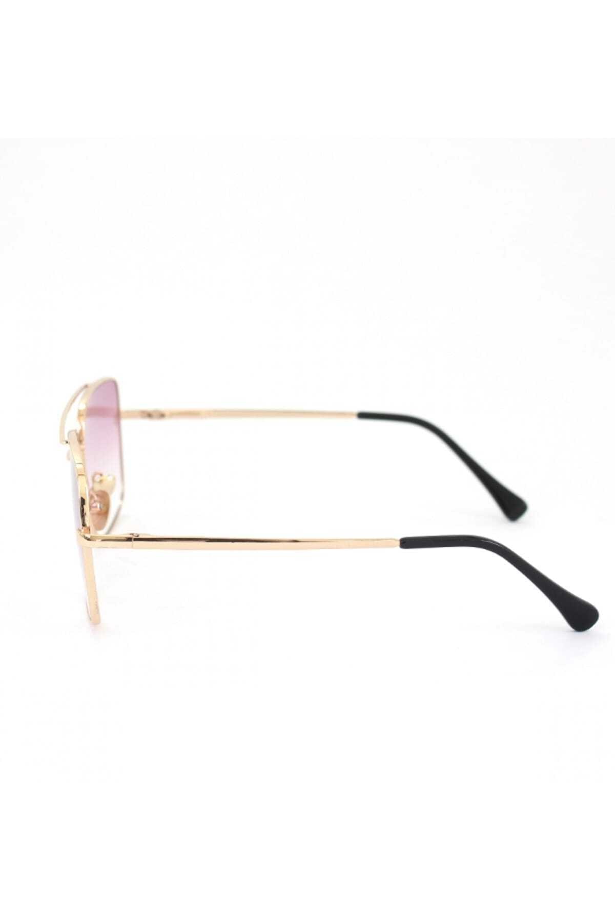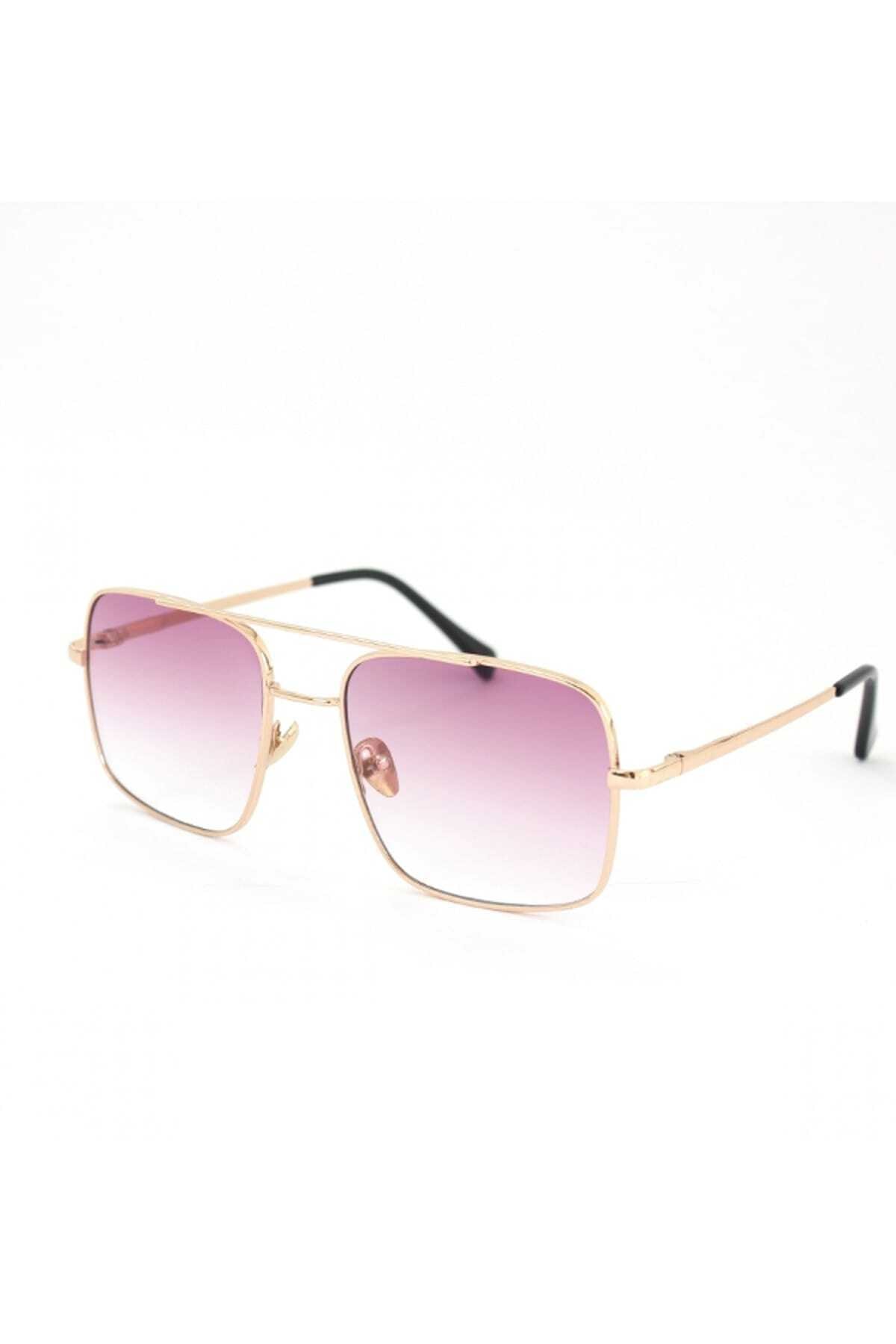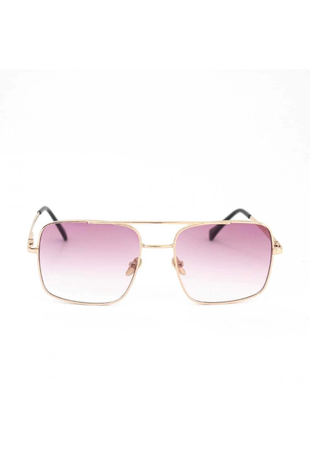 Castello Gold Metal Çerçeveli Mor Degrade Camlı Kare Unisex Güneş Gözlüğü