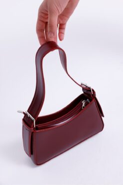 – Zarif tasarımıyla dikkat çeken bordo suni deri baget el omuz ve kol çantası, hem gündüz hem de gece şıklığınızı tamamlar.