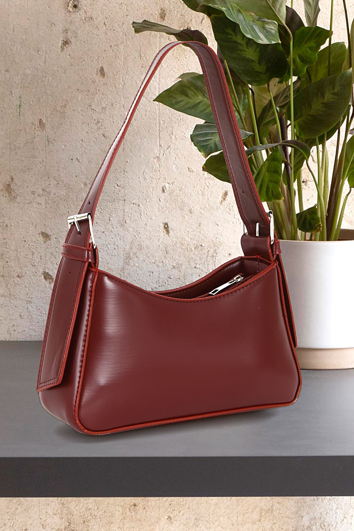 CELESTIAL COLLECTION Zarif Ve Şık Bordo Suni Deri Baget El Omuz Ve Kol Çantası