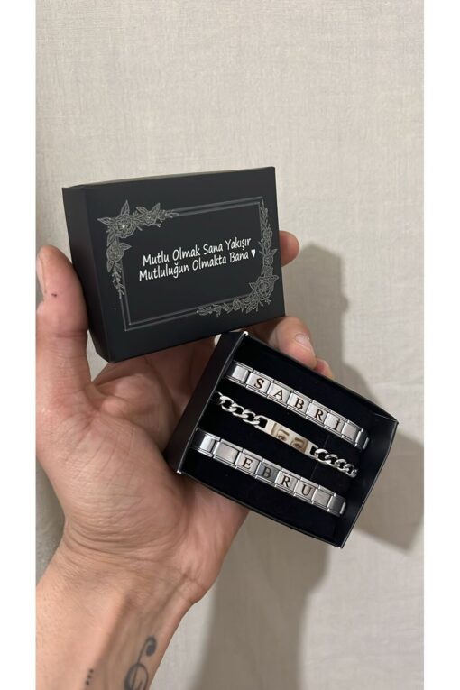 Çelik Göz Baskılı Bileklik ve İsim Yazılı Nomination Çelik Bileklik 3lü Harika Set