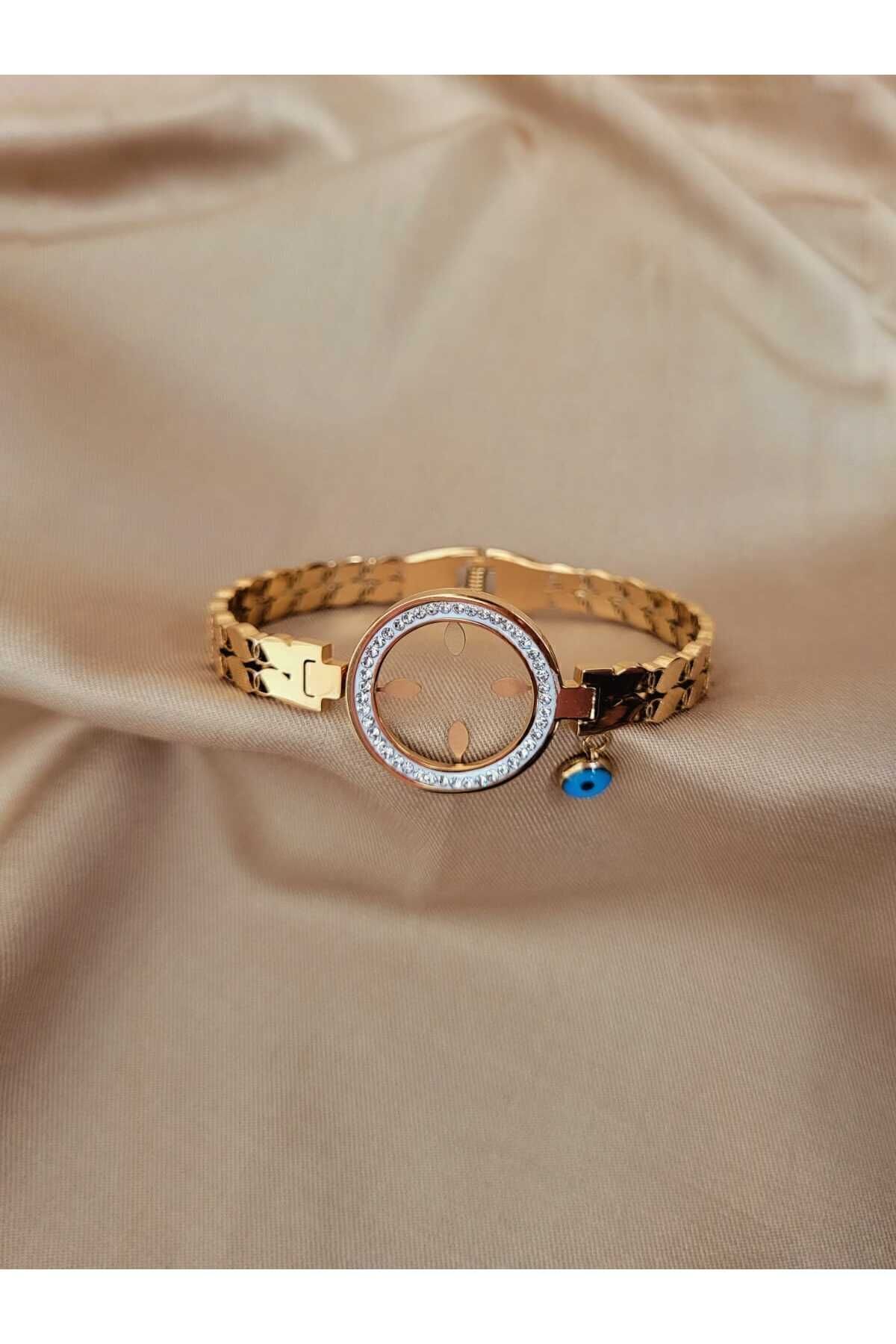 Çelik Kadın Gold Renk Solmaz Çeyrek Yuva Celik Bileklik
