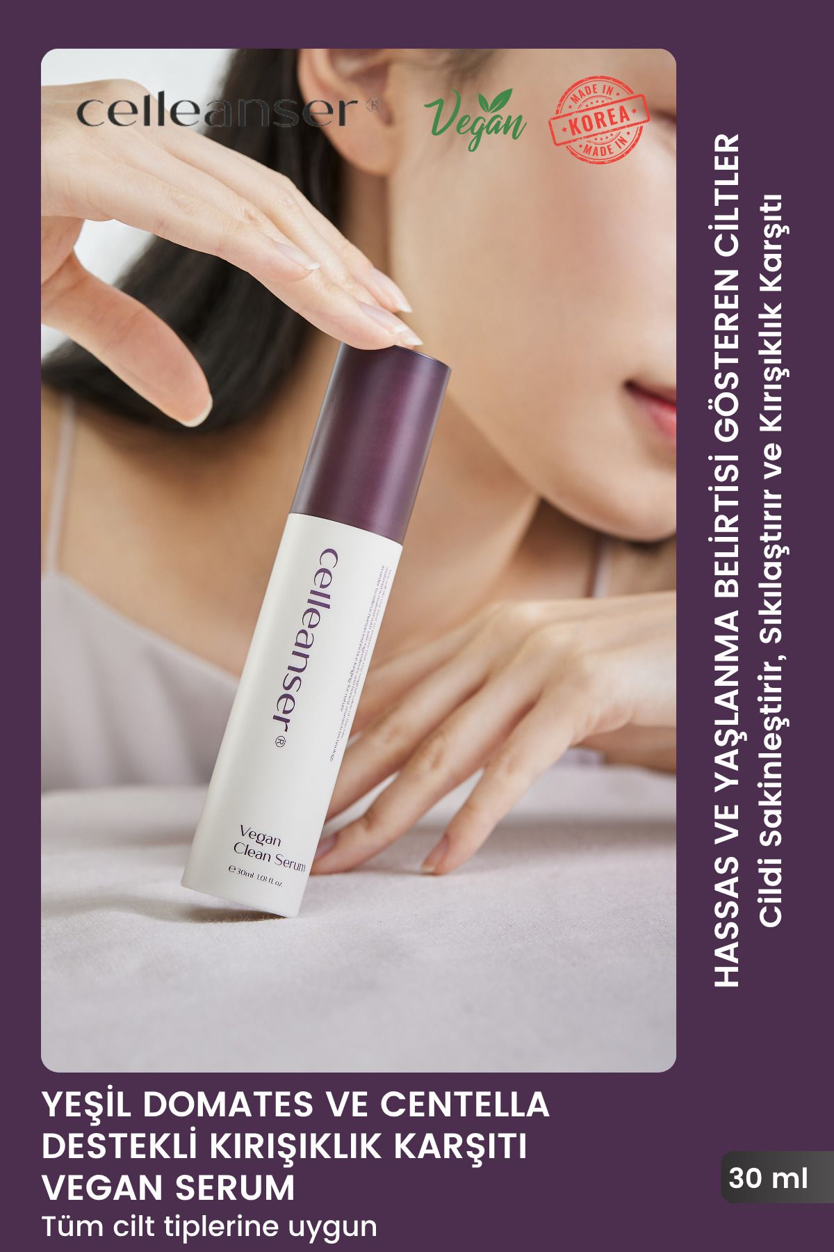 celleanser Yaşlanma Karşıtı, Nemlendirici, Bariyer Onarıcı, Besleyici, Antioksidan Vegan Yüz Serumu