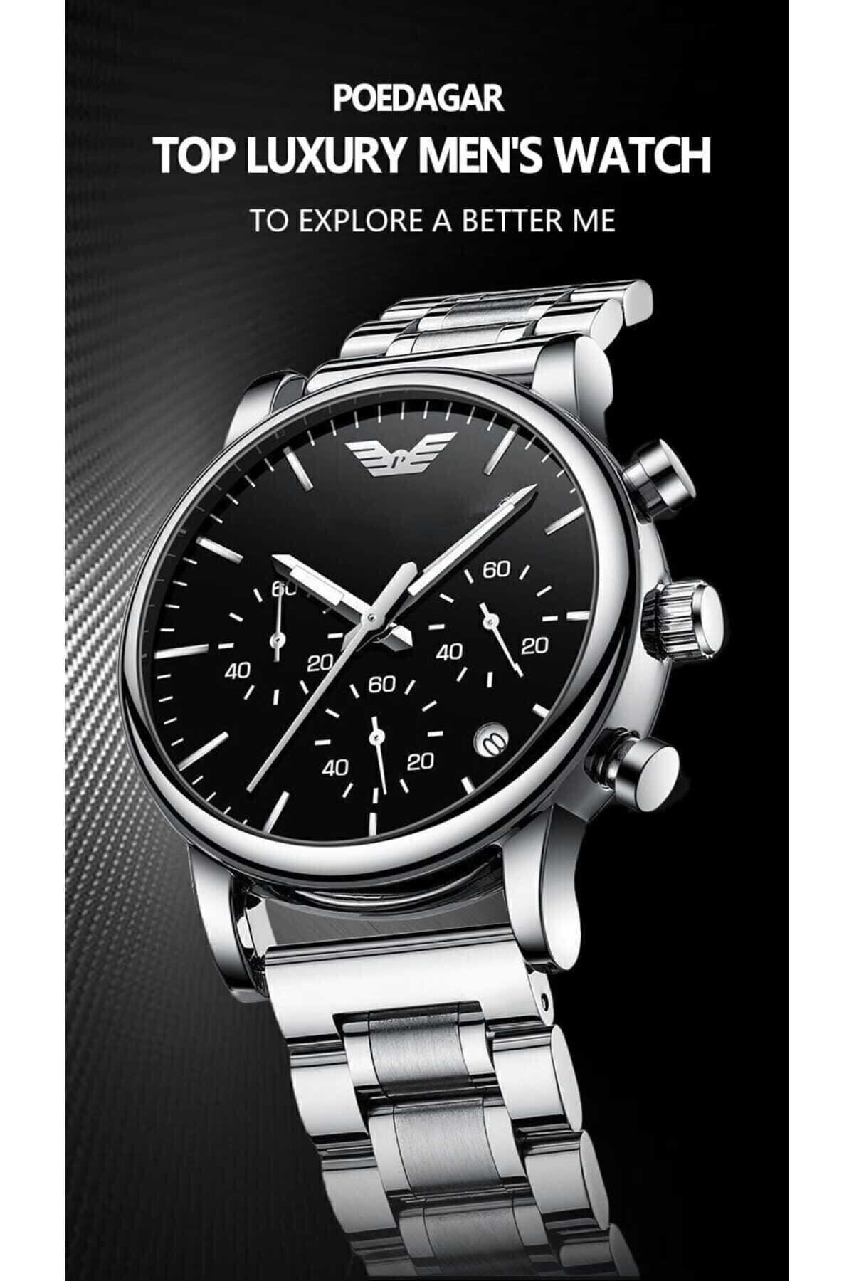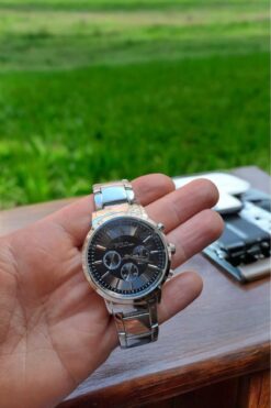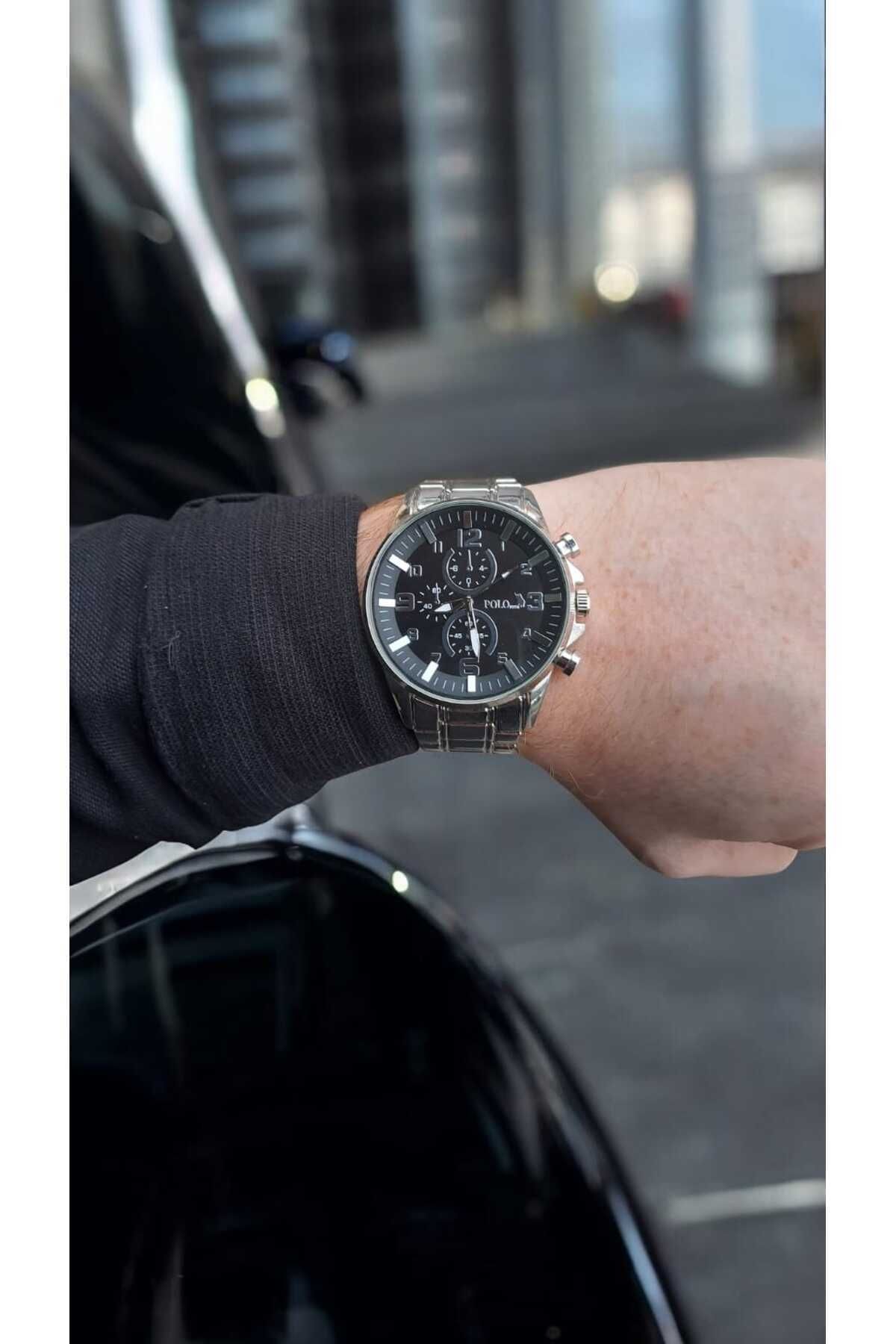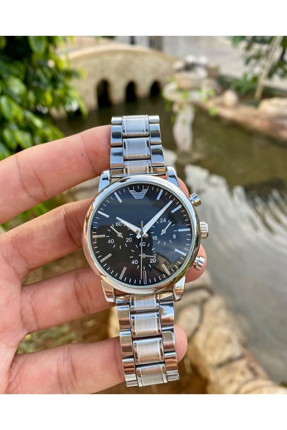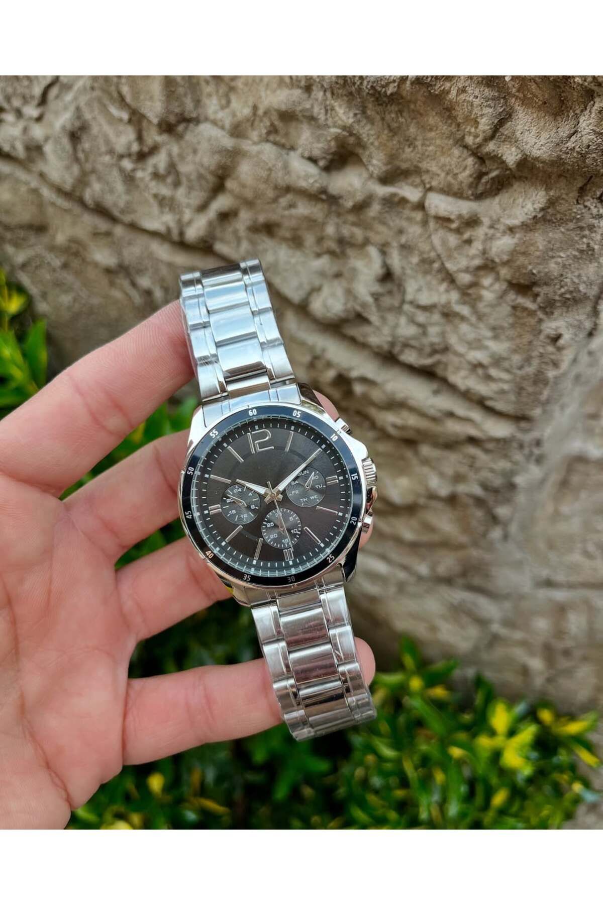 Erkek Çelik Gümüş Kordon Siyah Kadran Analog Yeni Model Kol Saati