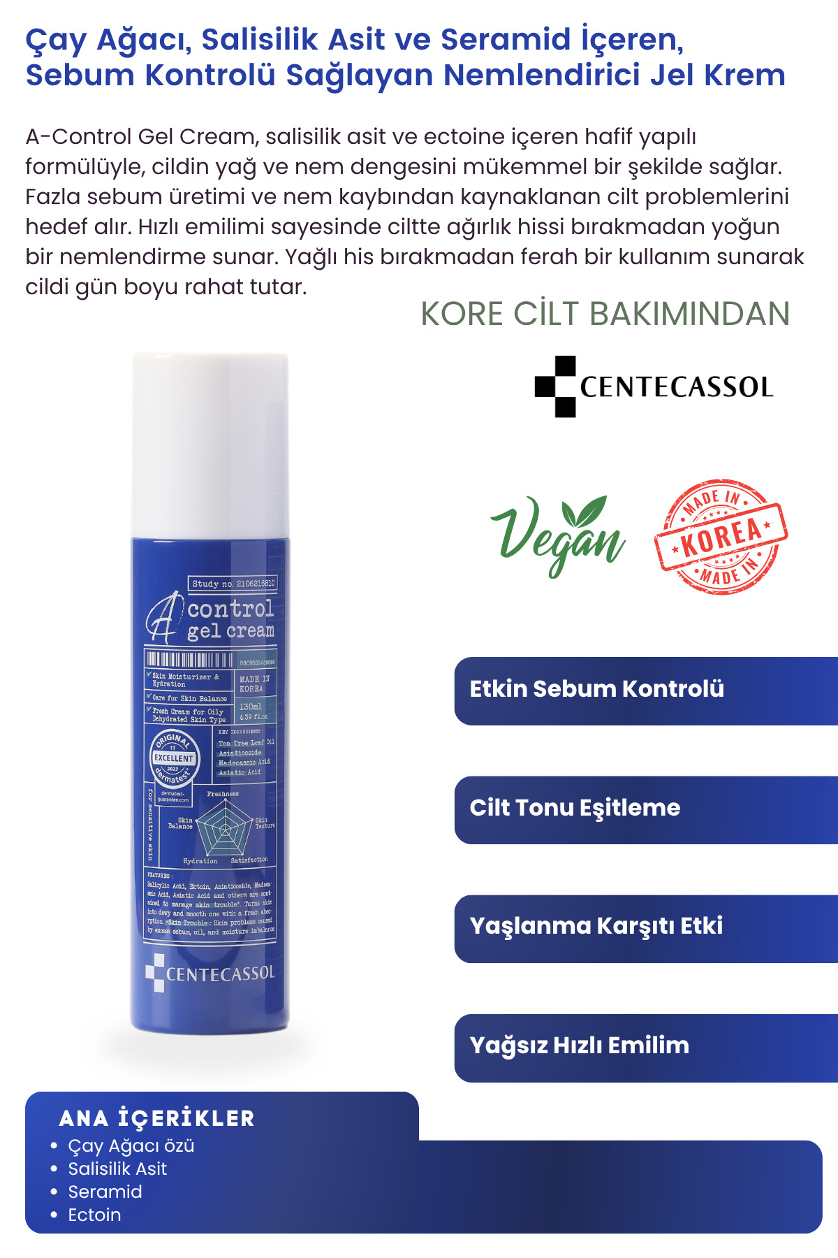 centecassol Çay Ağacı Özlü Yaşlanma Ve Kırışıklık Karşıtı, Nemlendirici, Sebum Dengeleyici Vegan Jel Krem ürününü en uygun fiyata kozmetikara.com sitemizden sipariş verebilirsiniz.