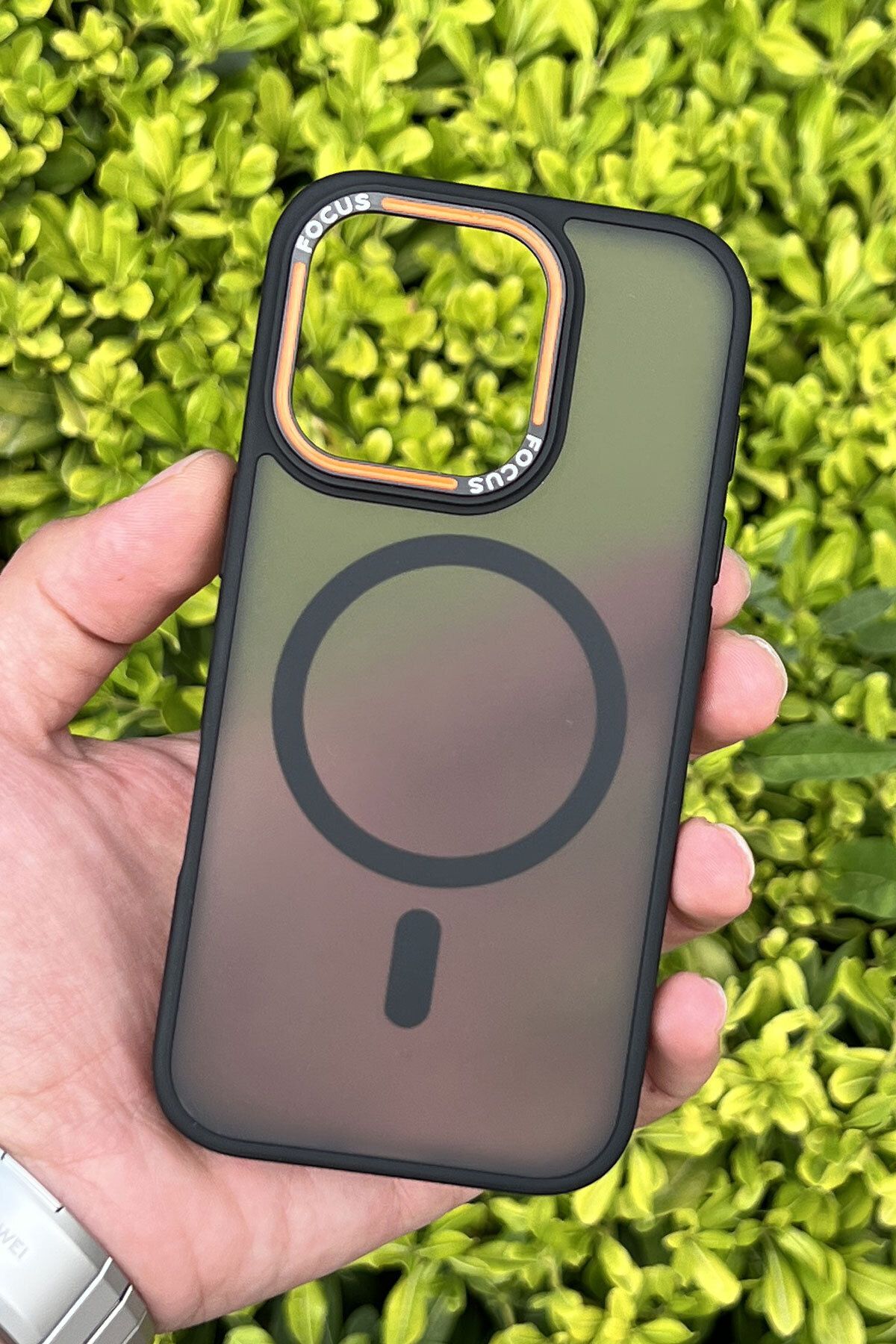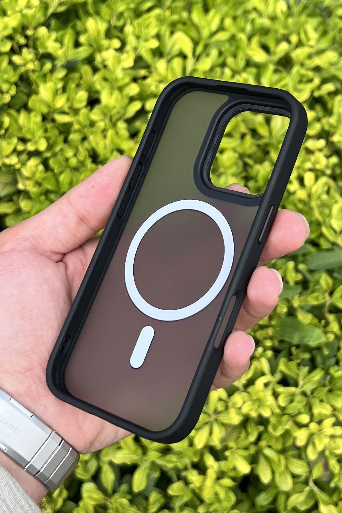 CEPSTOK Apple iPhone 16 Pro Max Siyah Kılıf Magsafe Wireless Şarj Özellikli Mat Silikon Kapak