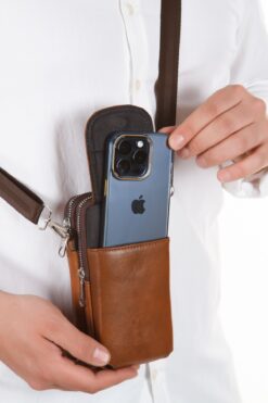 Taba Hakiki Deri Omuz Askılı Telefonluk & Kartlık.