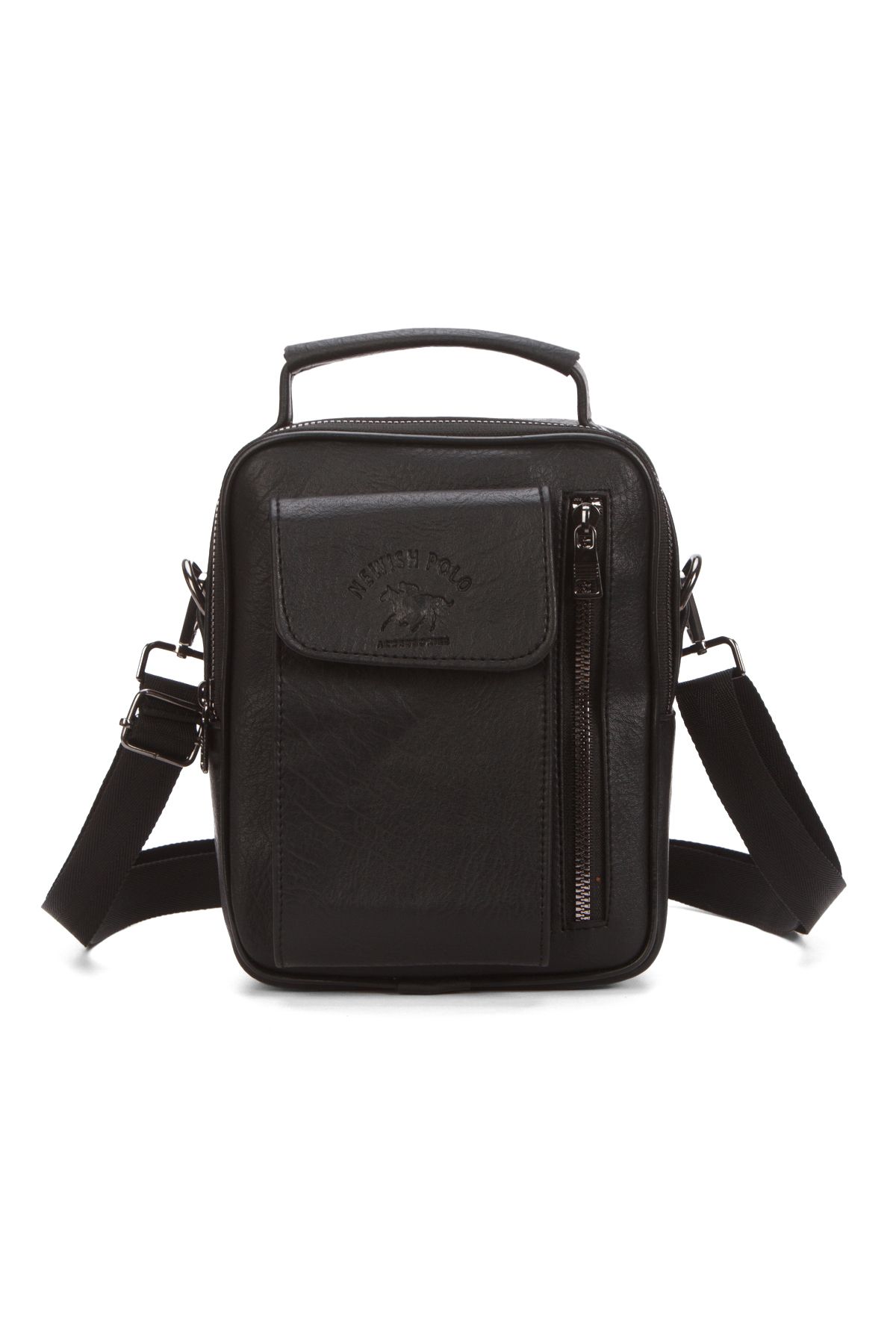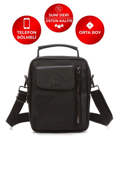 Siyah Kaliteli Suni Deri Telefon Bölmeli Orta Boy El & Omuz Çantası.