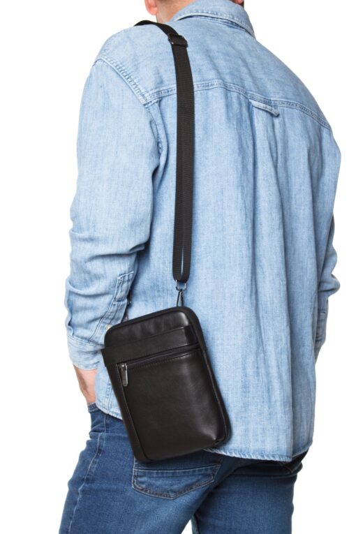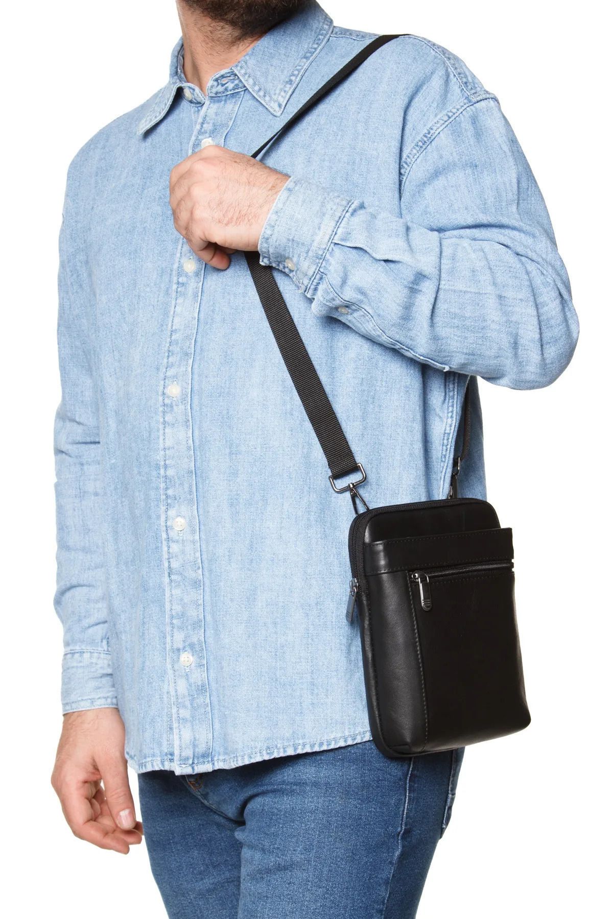 Siyah Unisex Hakiki Deri Omuz Çantası.