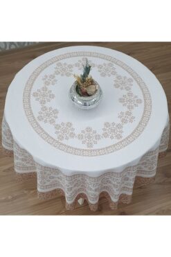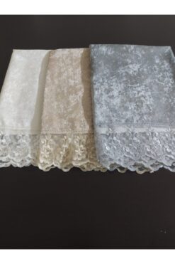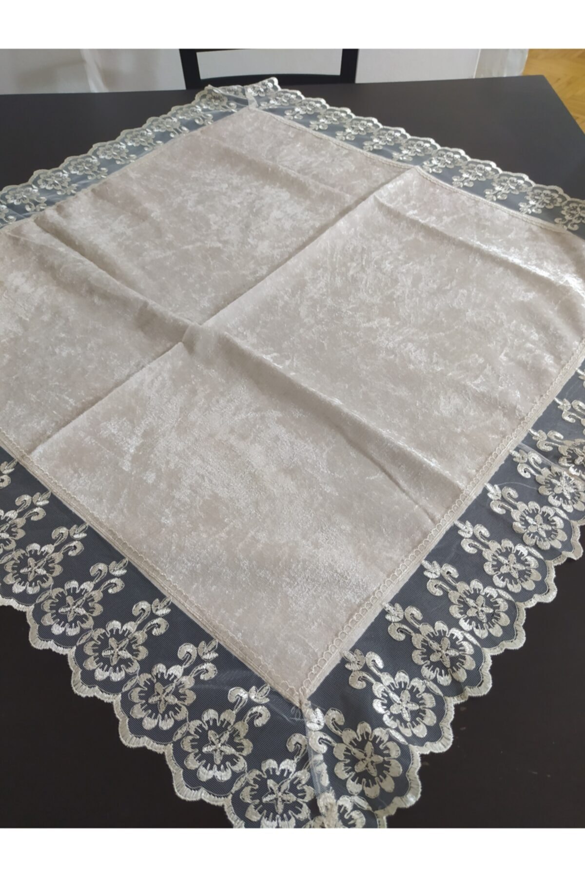 CEYDA Fiskos Örtüsü Dantel Kenar Kadife Kumaş Bej Renk 85x85cm