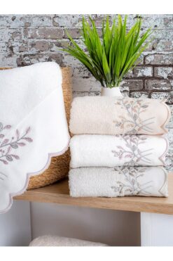 AYHANHOME 50x90 4'lü %100 Pamuklu Kadife Güpürlü Fiyonklu Desenli Havlu