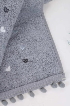 Çeyiz Merkezi Ponponlu Kalpli El Yüz Havlusu 50×90 GRİ