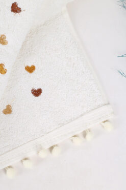 Çeyiz Merkezi Ponponlu Kalpli El Yüz Havlusu 50×90 KREM