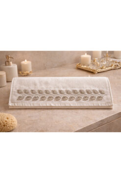 Ceylan Boncuk İşlemeli Lüks 2 ‘li Krem Kadife Havlu Seti – Özel tasarım – Çeyizlik ve Hediyelik Seri