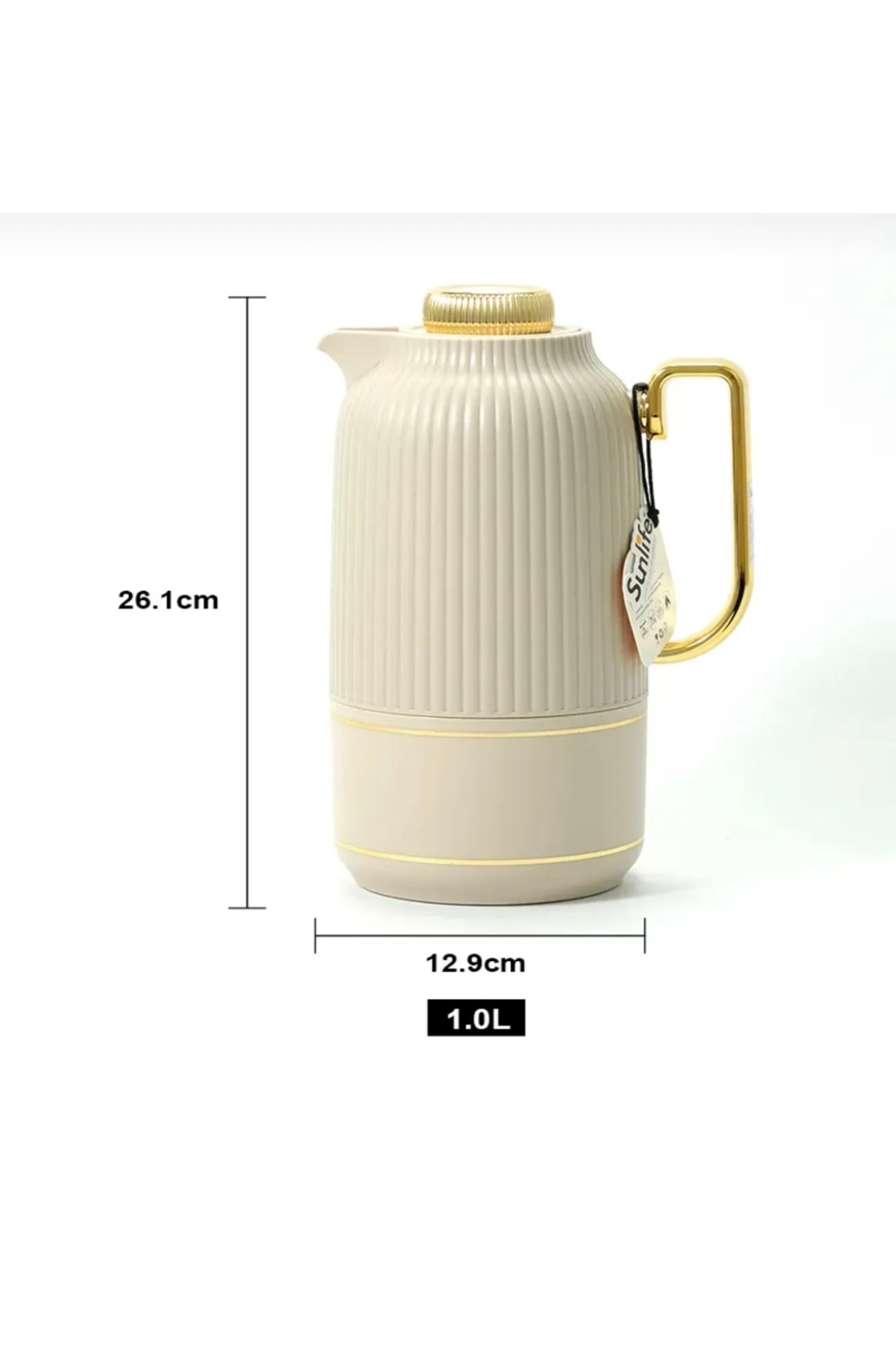 CEZVE HOME Krem Gold Detaylı Lüks Paslanmaz Çelik Termos Sürahi – 1 lt.