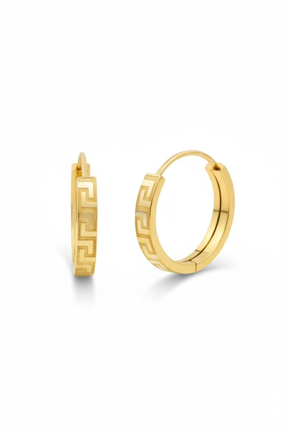 Çgk Çiğdem Gürel Kuyumculuk 14 Ayar 1.3 cm Desenli Tek Halka Altın Küpe