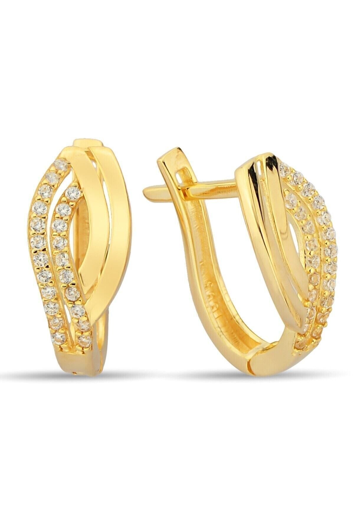 monalisatoka Kadın Gold Zikron Taşlı Tasarım Küpe