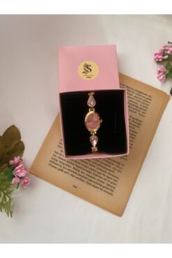 chaoyada Damla Pembe Taş Kordon Vintage Saat Hediye Kutusunda