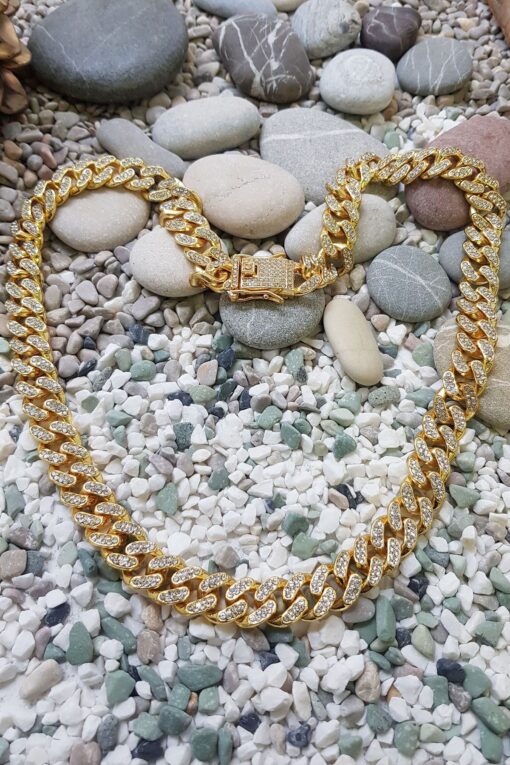 Chavin 13 Mm. Kalın 60 Cm. Taşlı Alloy Küba Erkek Zincir Ek54sr