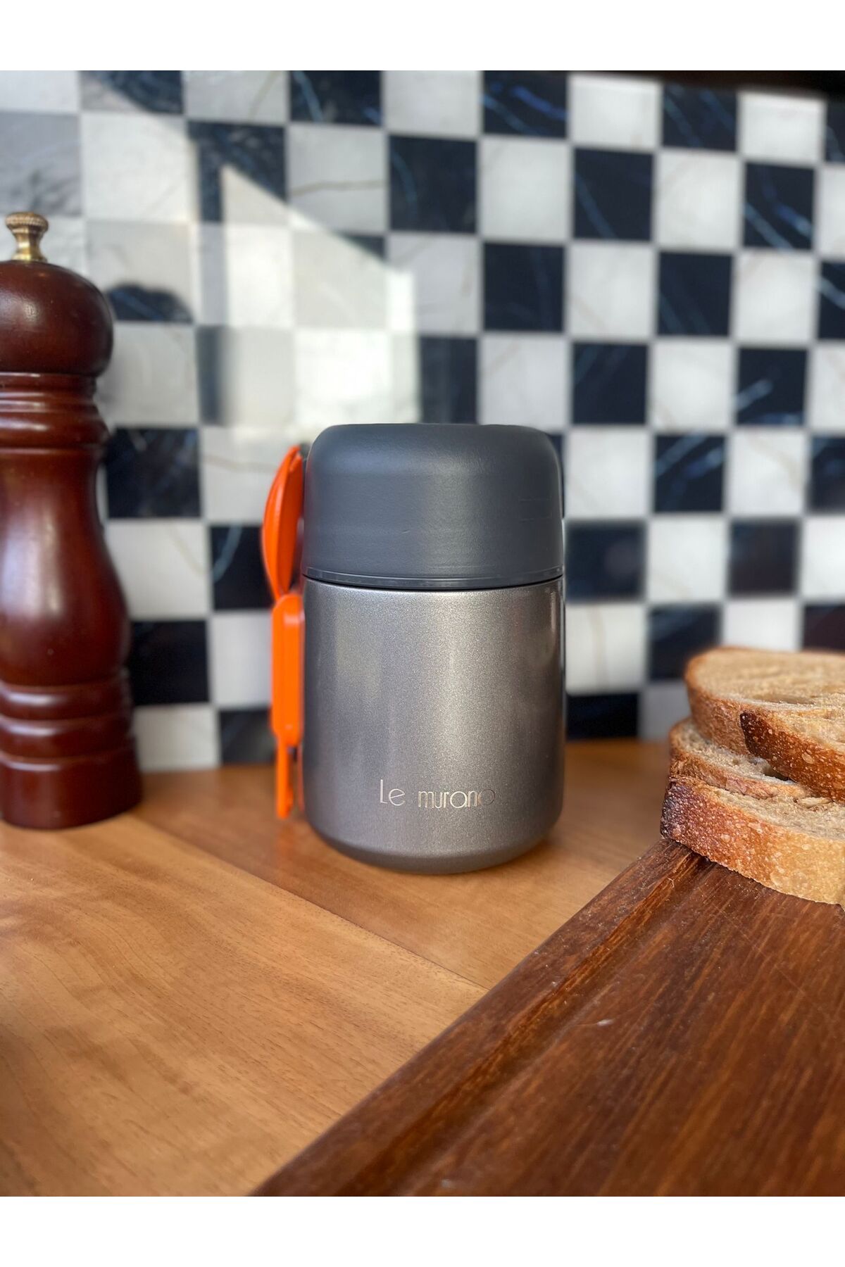 Chef Taste Kaşıklı Yemek Termosu Paslanmaz Çelik 500 ml Gri Yemek Termosu