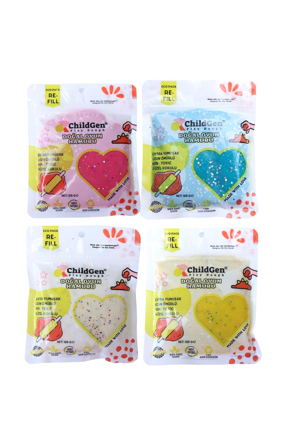 ChildGen Doğal Oyun Hamuru – 4lü Glitter Set 4×125 Gr Vakumlu Kartuş Paket – (ecopack-refill)