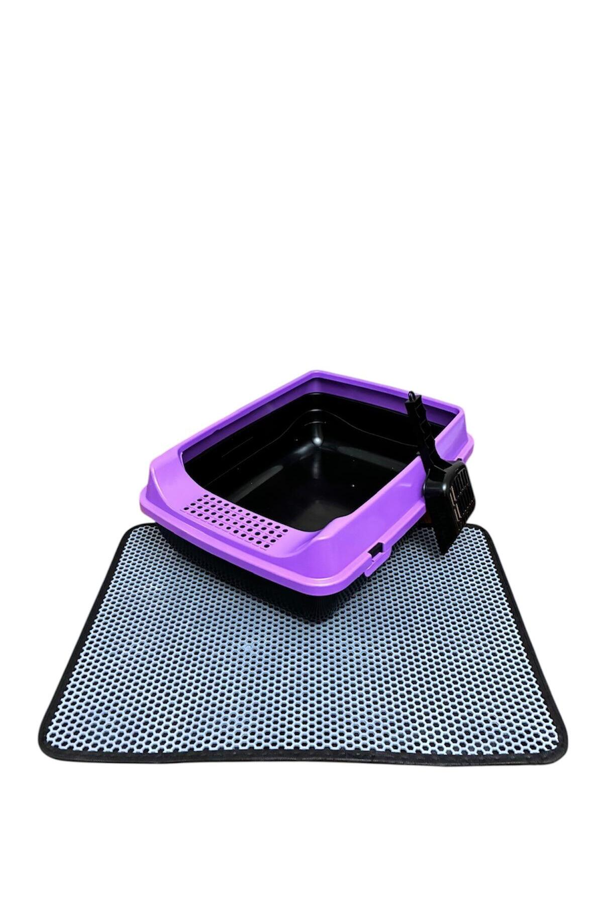 chittoshop Elekli Açık Kedi Tuvaleti + Kedi Kum Paspası + Hediye Kürek – Mor