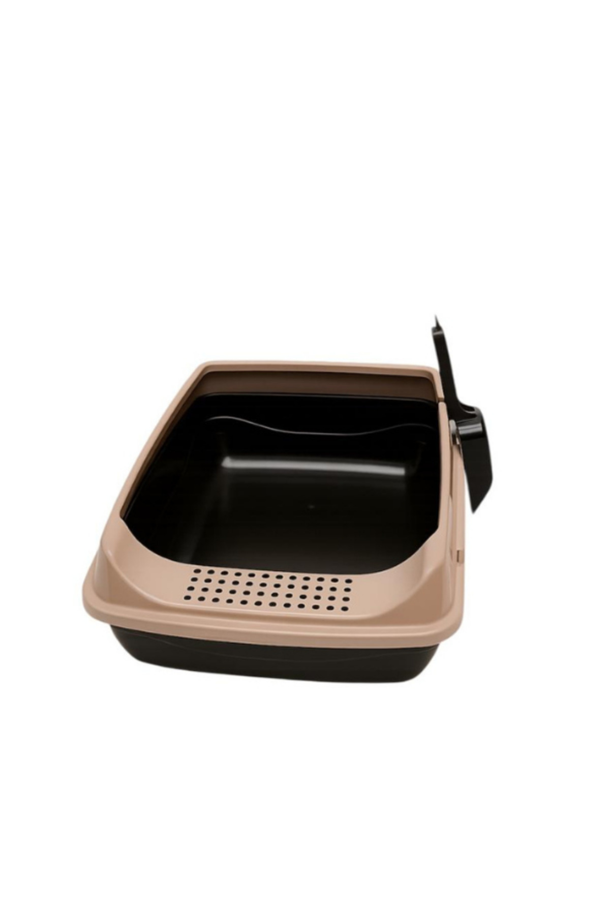 chittoshop Elekli Açık Kedi Tuvaleti Krem Siyah – Kolay Temizlenebilir Kedi Kumu Kabı ** Kürek hediyeli