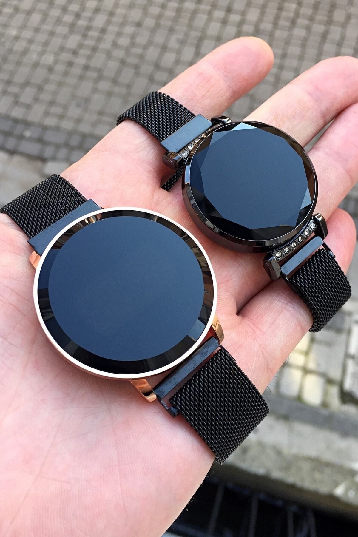 Choppers Mıknatıslı Hasır Kordonlu Dokunmatik Ekran Erkek Ve Bayan Çift Kol Saati Seti Sevgili Kombini