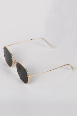 Chunky Frame Gold Metal Çerçeveli Beşgen Unisex Güneş Gözlüğü