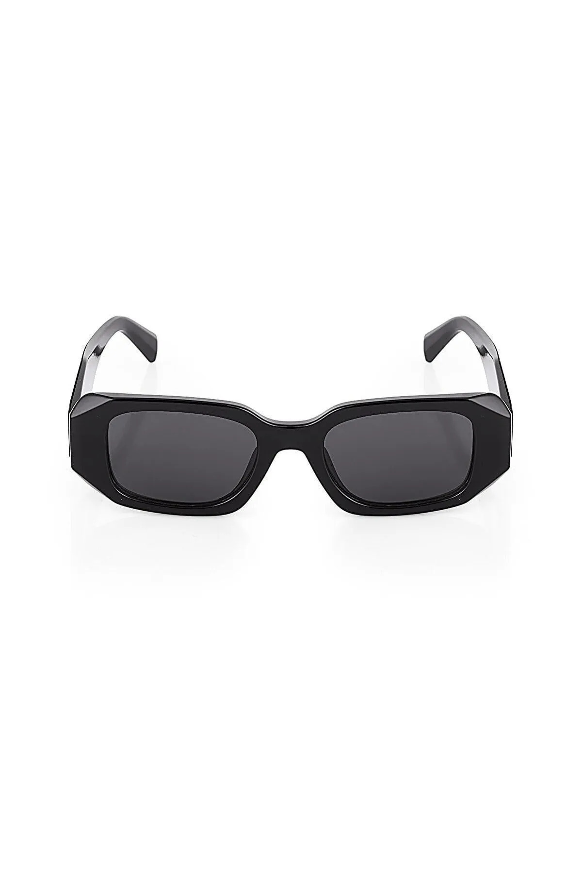 Chunky Frame Jenniy Unisex Vintage Siyah Dikdörtgen Güneş Gözlüğü