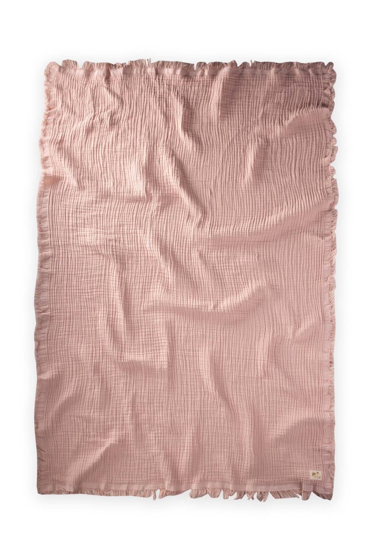 Cigit Dört Kat Püsküllü Organic Müslin Battaniye 80X120 Cm Pudra Pembe