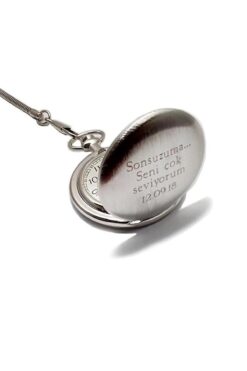 KİŞİYE ÖZEL İSİM YAZILI KROM SAMSTAR KÖSTEKLİ CEP SAATİ İstediğiniz isim, logo, simge, marka vb lazer ile yazılır Quartz mekanizmalı pilli, dayanıklı, kullanışlı ve sağlam krom cep saati.