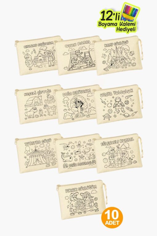 Çınar Bez Çanta Eğlenceli Aktiviteler Baskılı Boyama Cüzdanları – 10 Adet