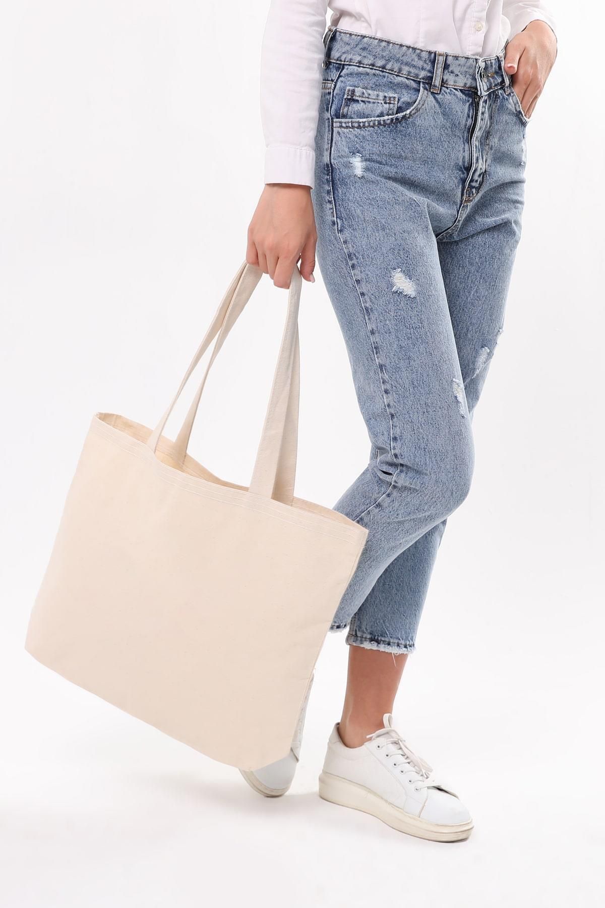 Ürün Adı : Kanvas Alt Körüklü Yatay Bez Çanta, Model : Kanvas Çanta, Ölçü : 47x36x8 cm (Alt Körüklü), Renk : Krem, Kulp : 70 cm (omuz)