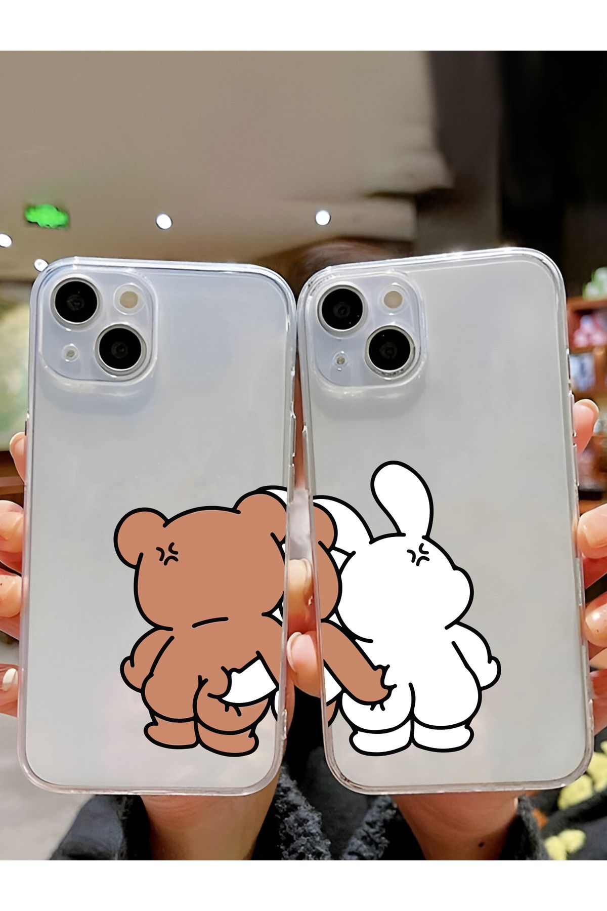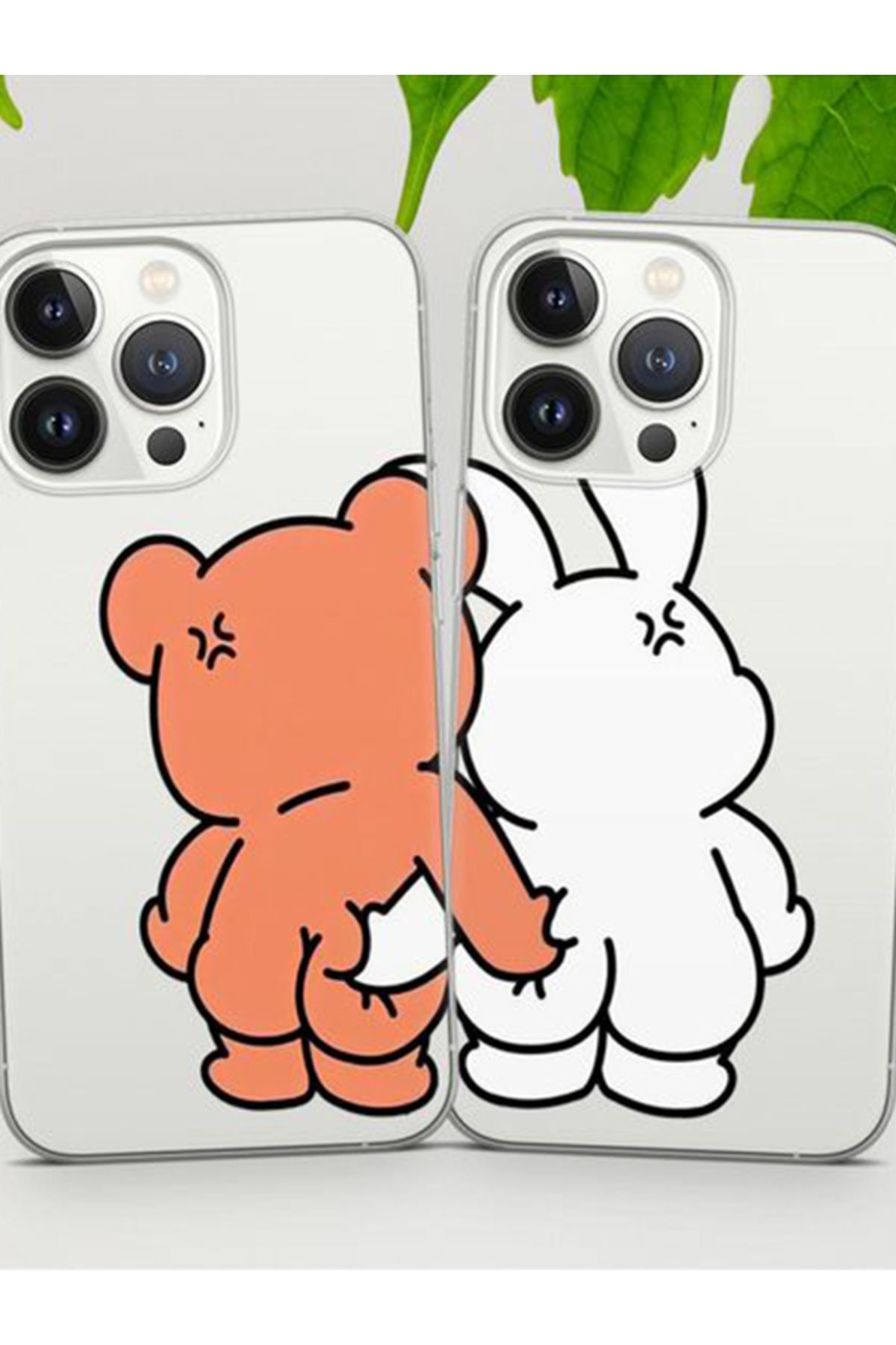 Çitlembik Case Panda Tasarım Baskılı Çift Telefon Kılıfı Premium Couple Şeffaf Telefon Kılıfı