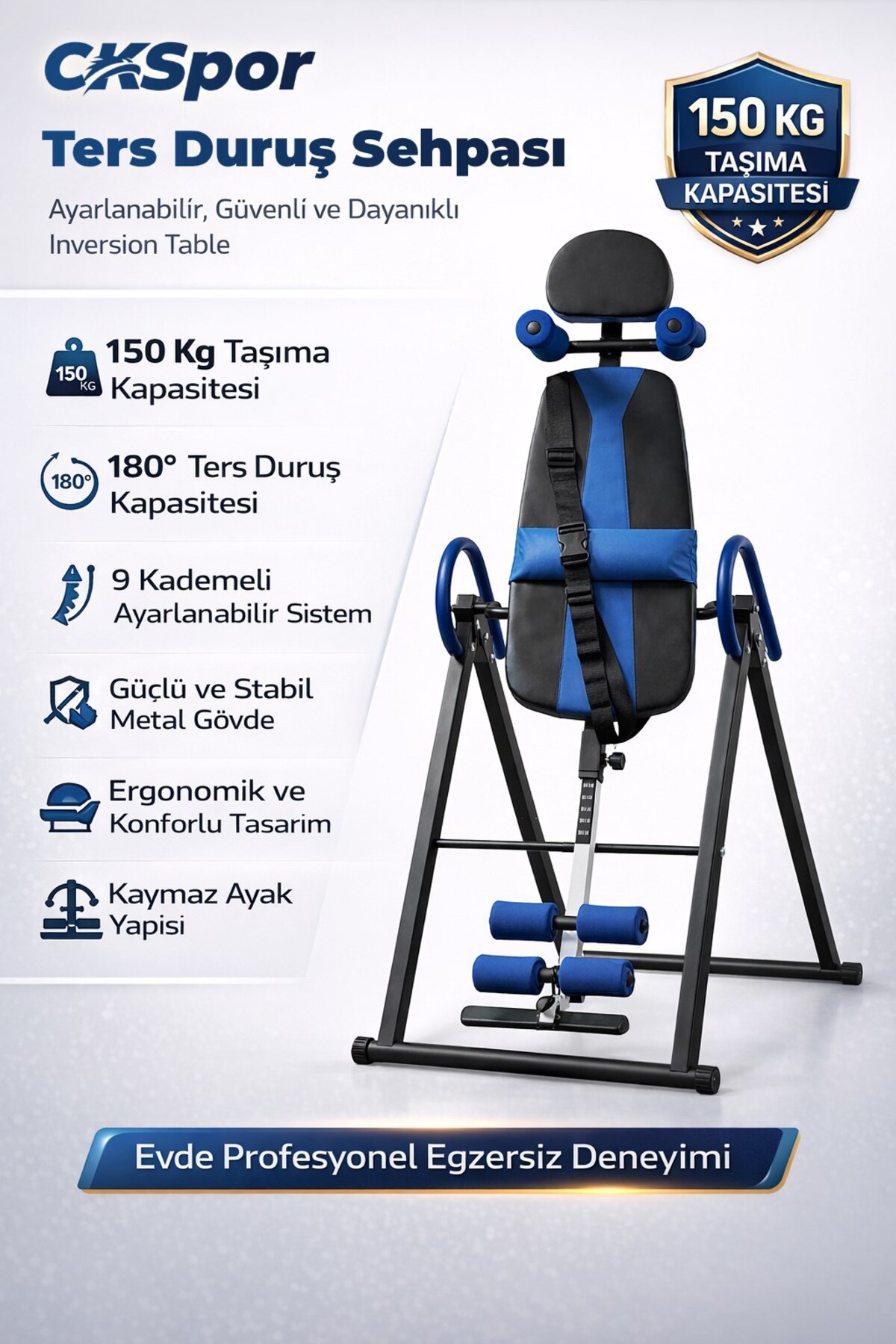 CKSpor Ters Duruş Sehpası İnversion Table 150 Kg Evde Spor Bel Sırt Esnetme Aleti ürününü en uygun fiyata kozmetikara.com sitemizden sipariş verebilirsiniz.