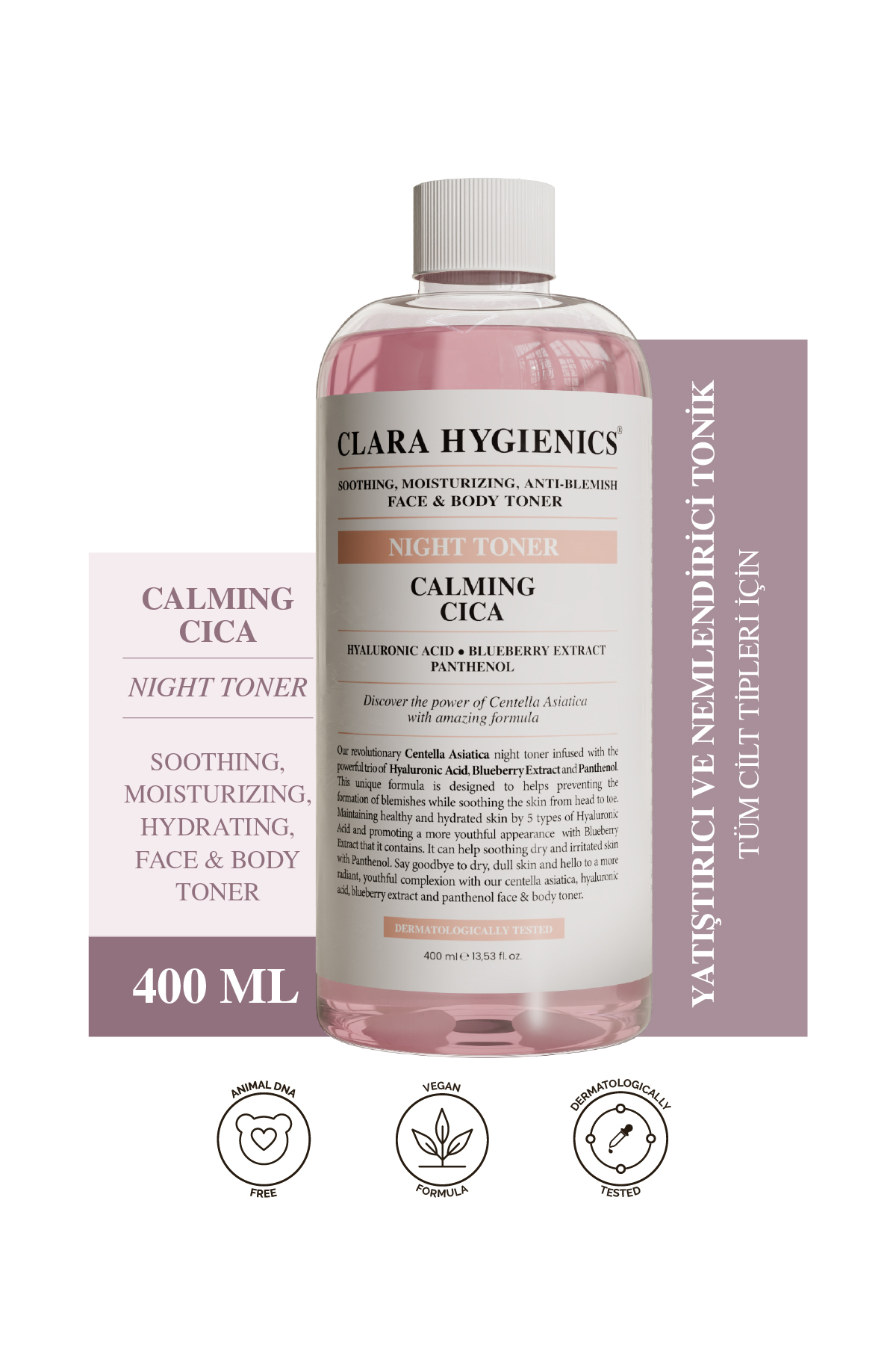 Clara Hygienics Calming Cica Leke Karşıtı Tonik 400ml – Yatıştırıcı Nemlendirici Ton Eşitleyici Vegan (Yüz Ve Vücut)