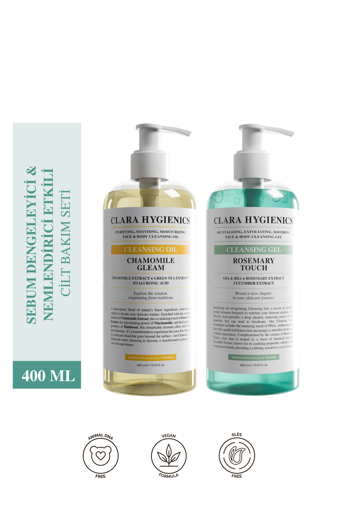 Clara Hygienics Çift Aşamalı Temizleyici Sebum Dengeleyici Vegan Yüz Ve Vücut Günlük Hijyen Seti ürününü en uygun fiyata kozmetikara.com sitemizden sipariş verebilirsiniz.