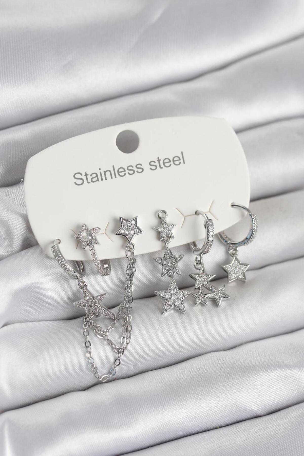 Clariss 316L Çelik Gümüş Renk 6’lı Set Zincirli Yıldız Modelli Kadın Küpe