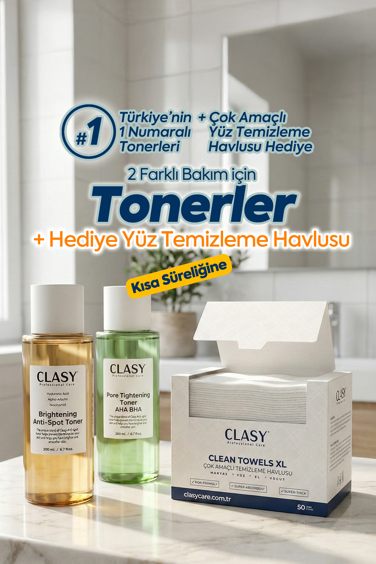 Clasy Care Aydınlatıcı Leke Karşıtı ve Gözenek Karşıtı Toner Bir Arada 200+200 M ürününü en uygun fiyata kozmetikara.com sitemizden sipariş verebilirsiniz.