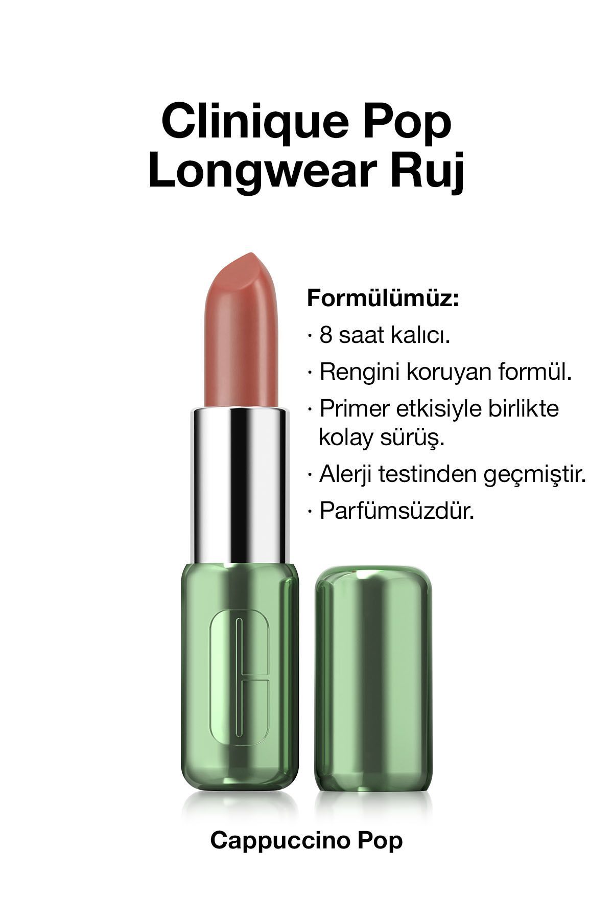 Clinique Pop Longwear™ Gün Boyu Kalıcı Ruj - Renk: Capuccino Pop 3.9g | Saten Bitiş ürünü ucuz fiyat, hızlı kargo imkanı ile hemen sitemizden sipariş verin.