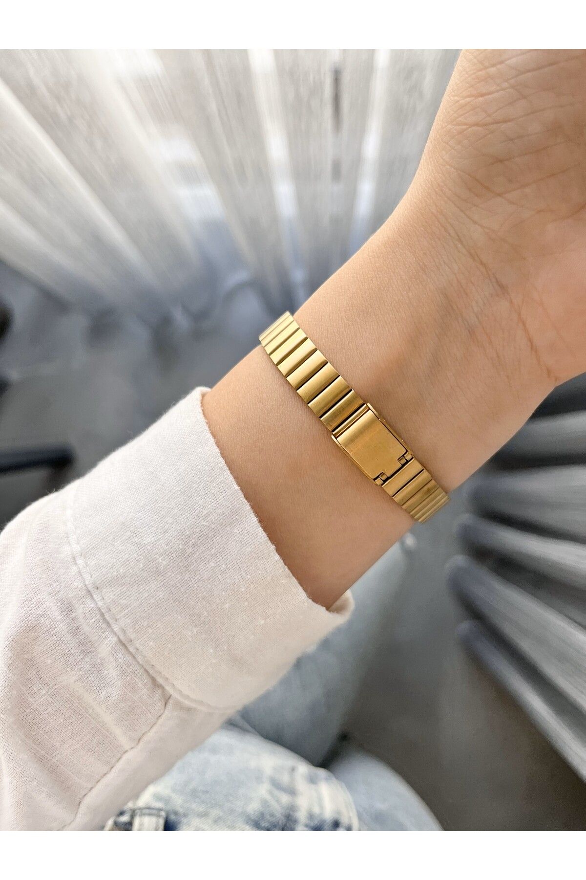 Altın rengi kasa tasarımı, zarif ve modern bir görünüm kazandırır