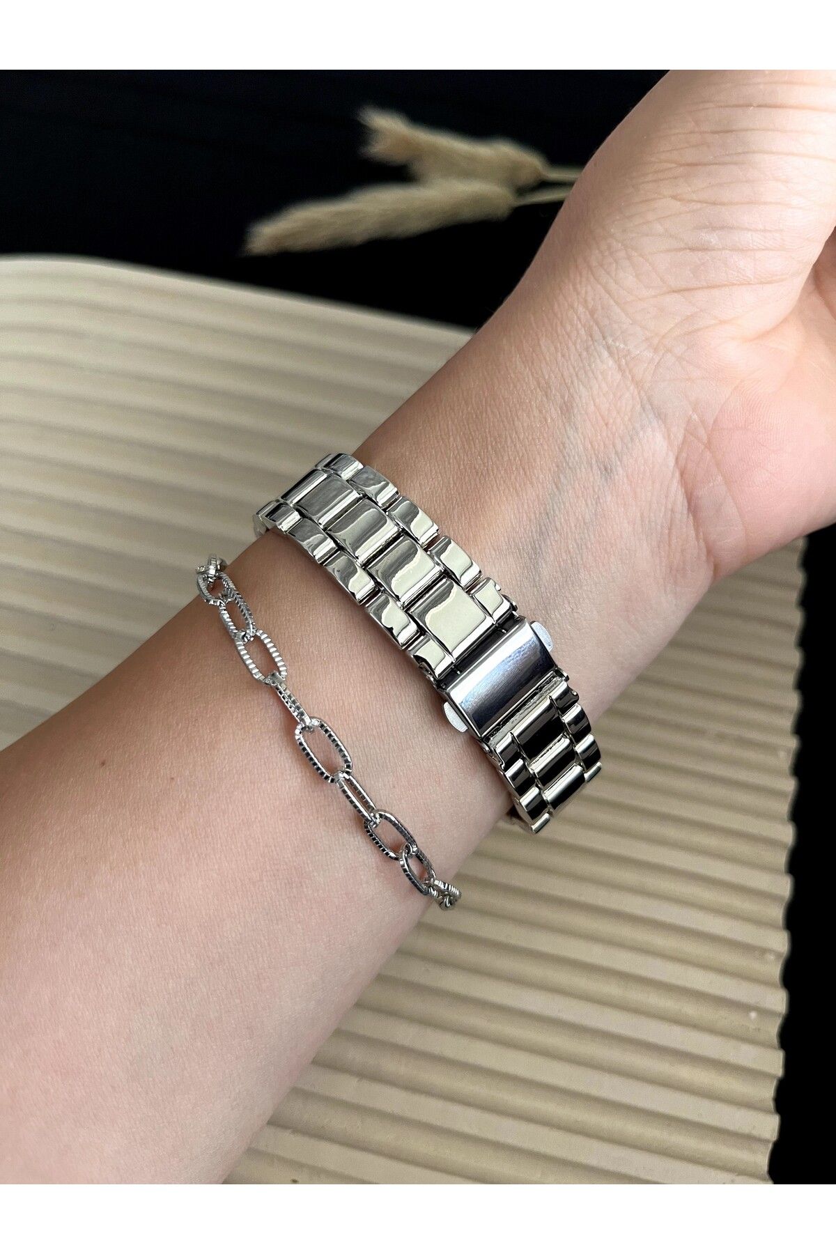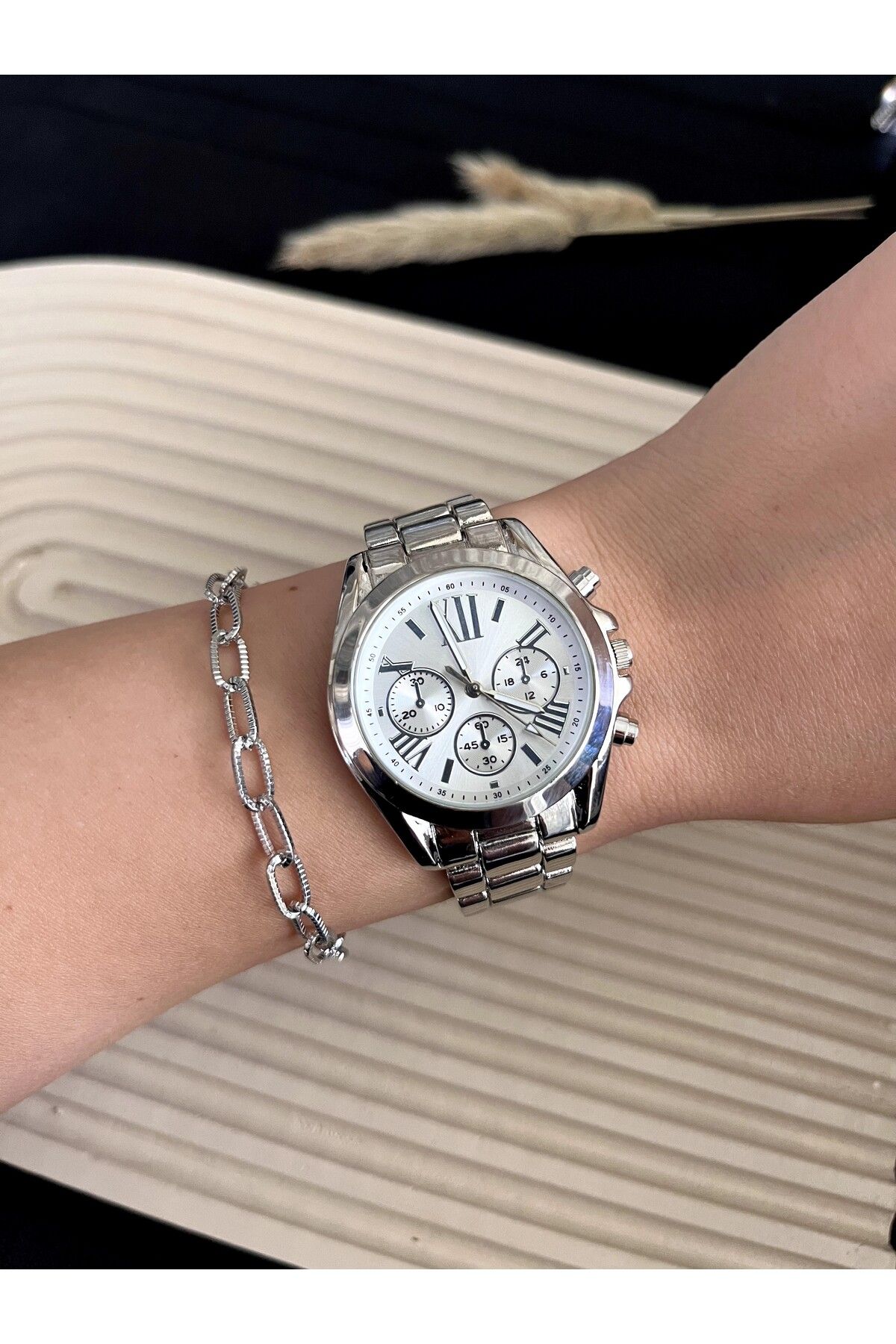 Gümüş kasa rengi ile her türlü kıyafetle kolayca uyum sağlar