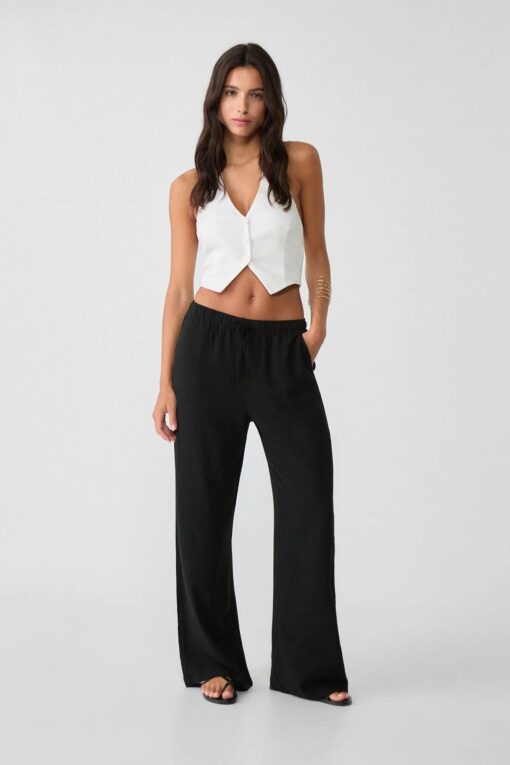 Cochines Kadın Siyah Keten Karışımlı Bol Kesim Bol Paça Cepli Yazlık Pantolon en ucuz fiyata kozmetikara.com sitemizden sipariş verebilirsiniz.