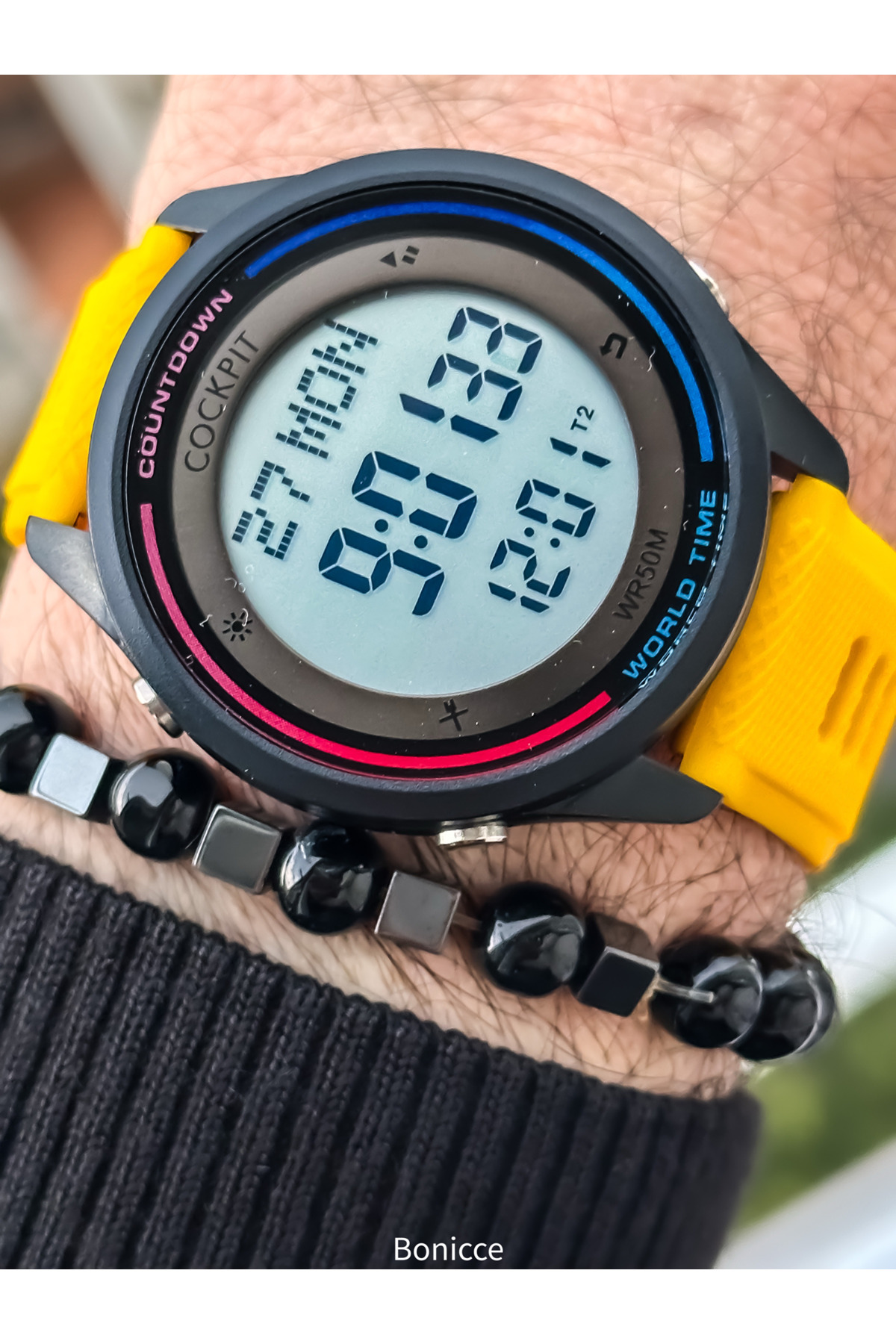 Cockpit Havuz Deniz Kullanıma Uygun Sarı Renk Silikon Kordon,Işıklı, Dijital Spor Erkek Kol Saati Bileklik