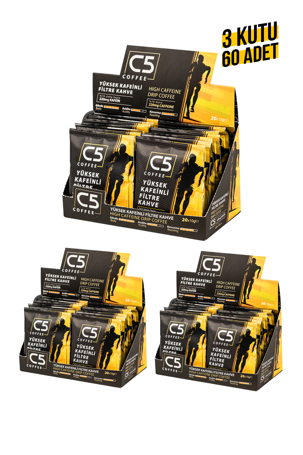 Coffee C5 Yüksek Kafeinli Pratik Filtre Kahve | Filtresi İçinde | 20’li 3 Kutu | Coffee C5