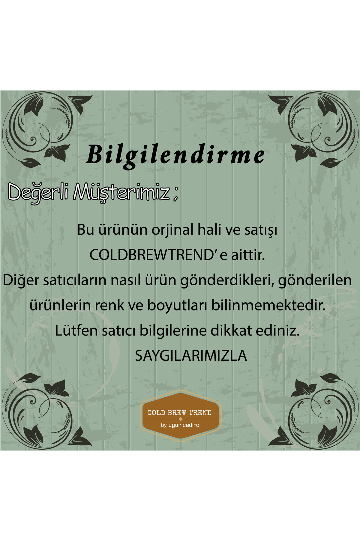 Biz sizin güveninizi önemsiyoruz . Alışveriş yaptığınızda , ürünün orijinalliği ve kalitesi konusunda içiniz tamamen rahat olur . Her zaman orijinal ürün , güven ve memnuniyet ilkelerimizle hareket ediyoruz .
