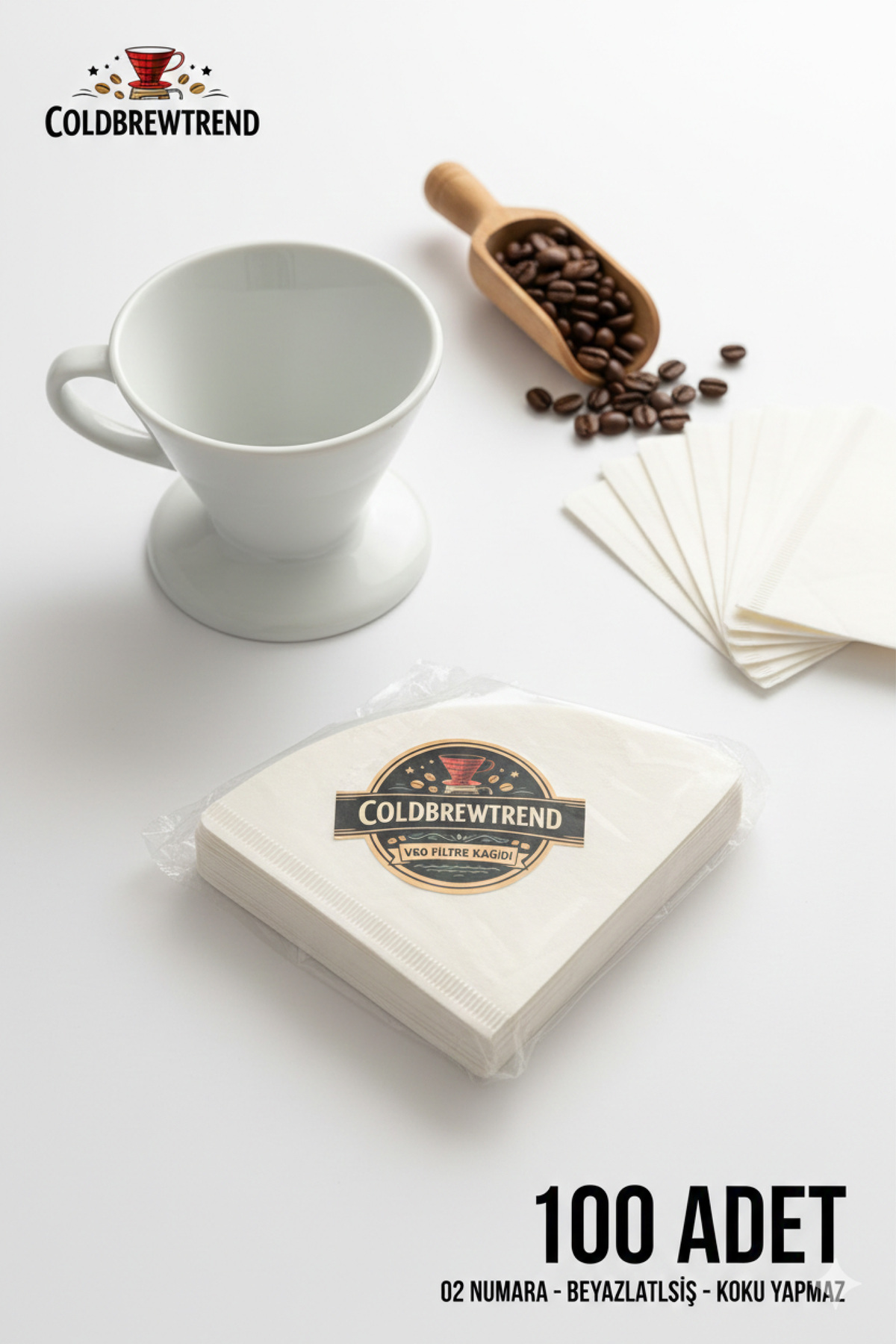 COLD BREW TREND by uğur cadırcı V60 Kahve Filtre Kağıdı 02 Numara 100 Adet – Beyaz
