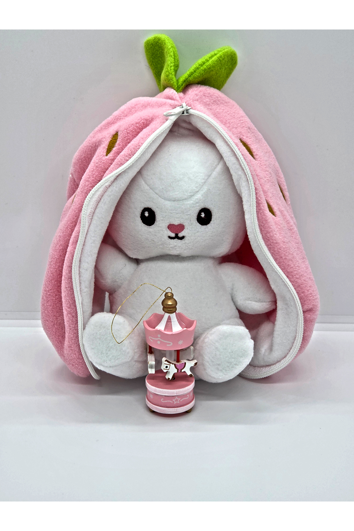 Collectors Store Sevgiliye , Doğum Gününe Özel Çilek Desenli Hediyelik Fermuarlı Peluş Tavşan & Atlı Karınca Hediyeli