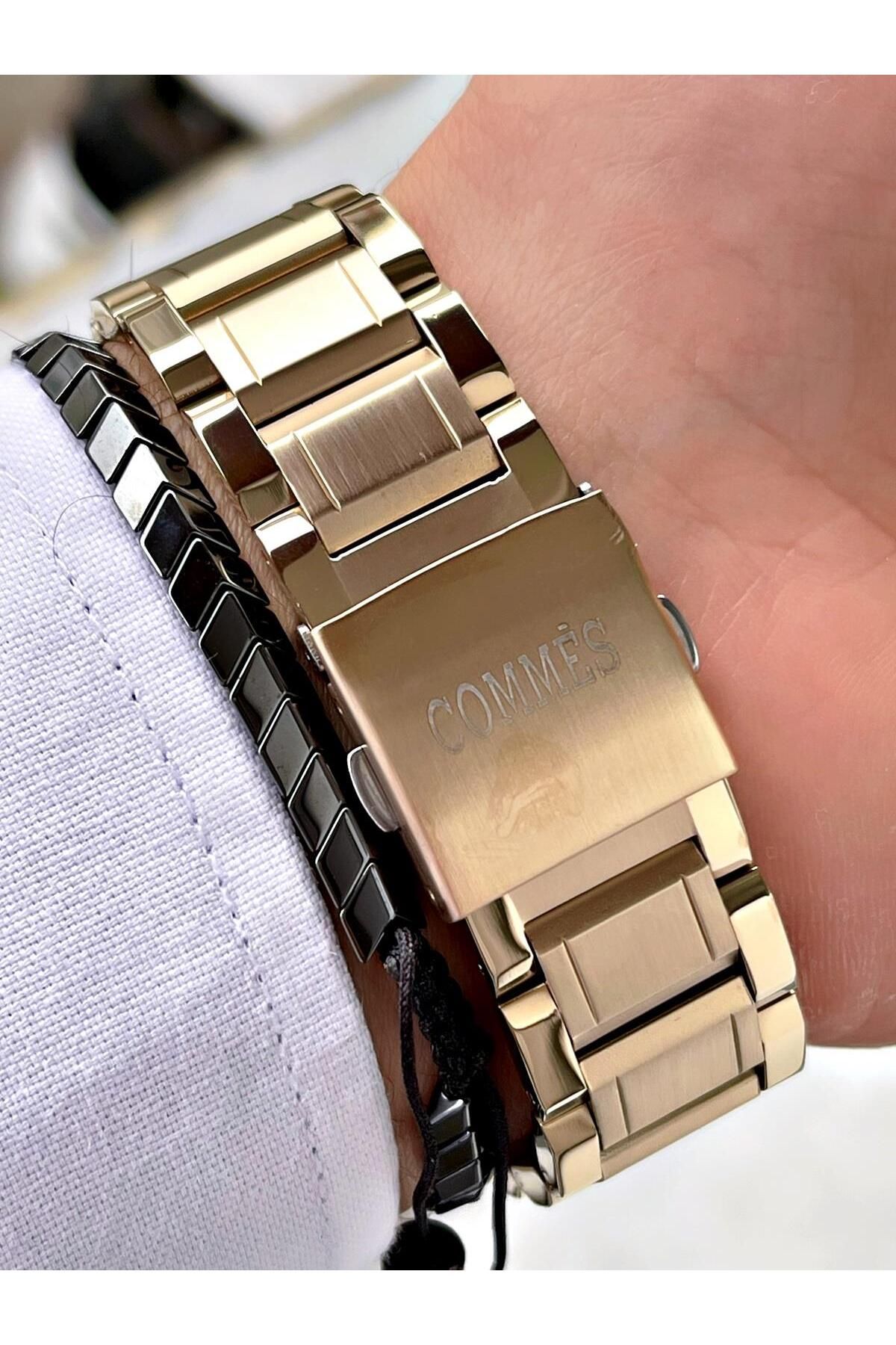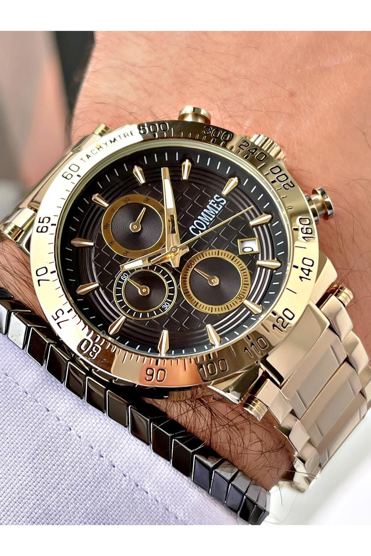 Commes Çelik Kordon Kronometre ve Takvimli Altın Siyah Renk Unisex Klasik Kol Saati CM1904-GGB